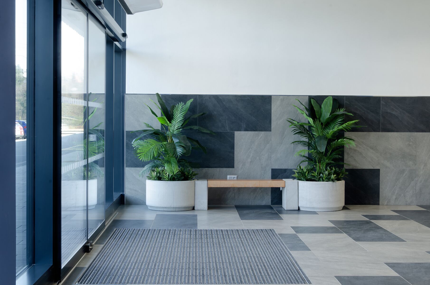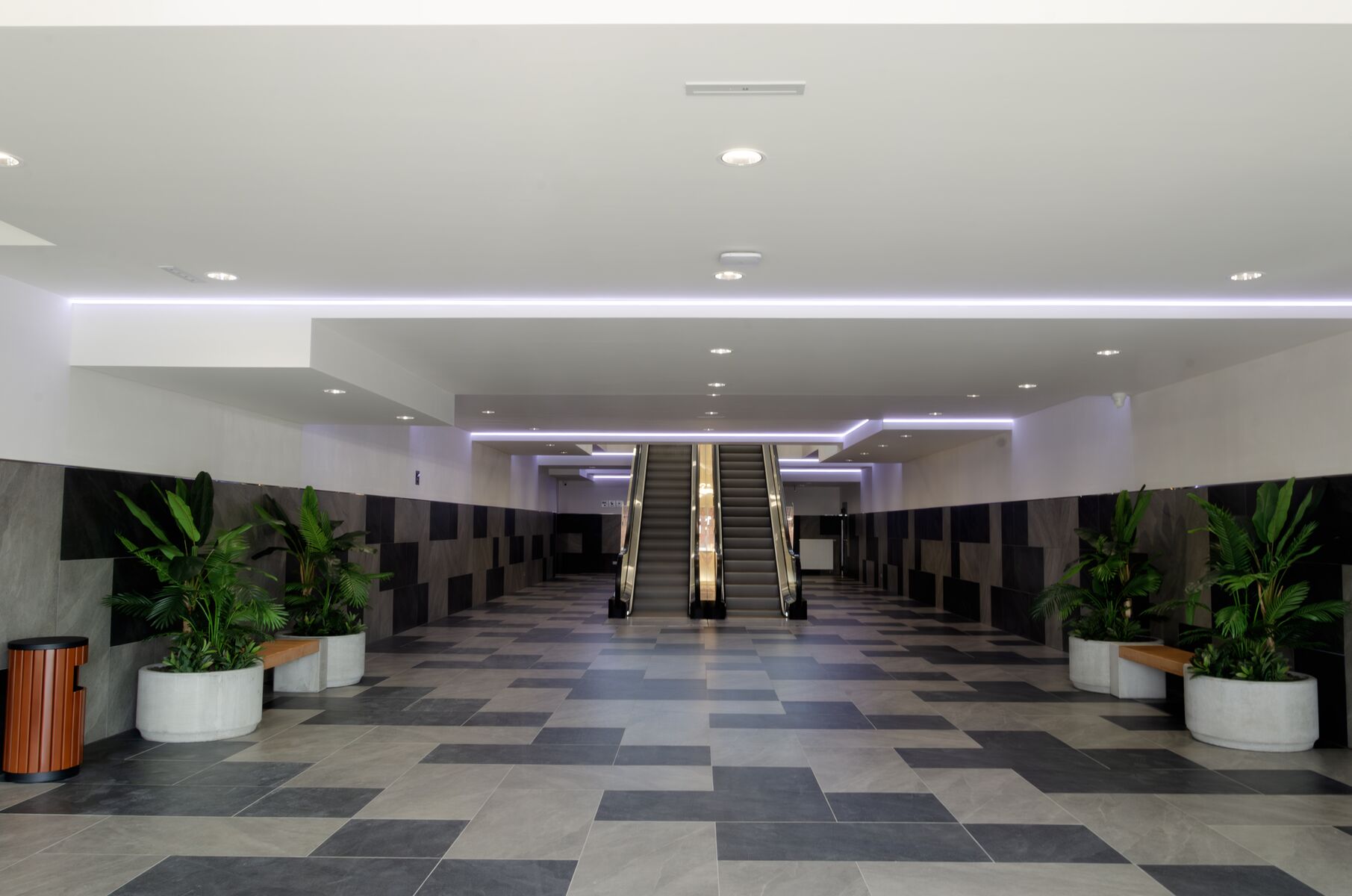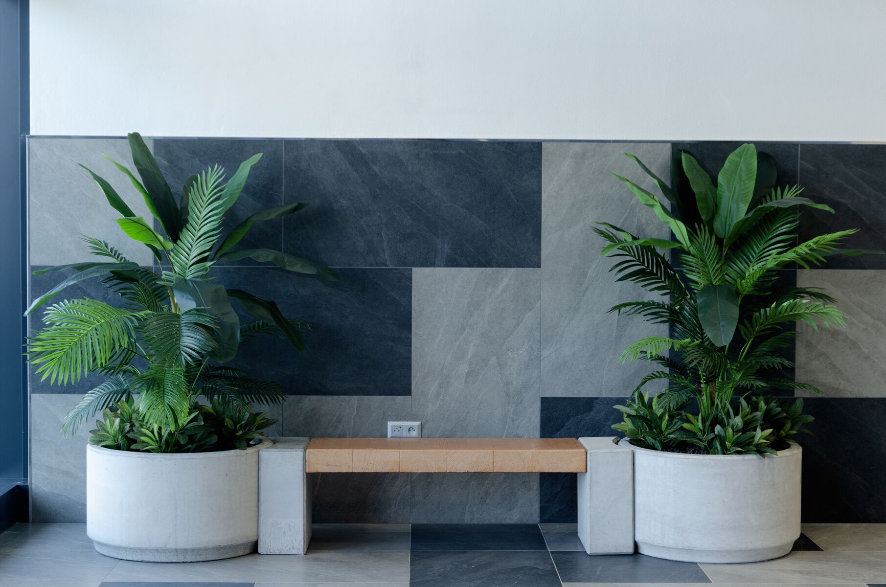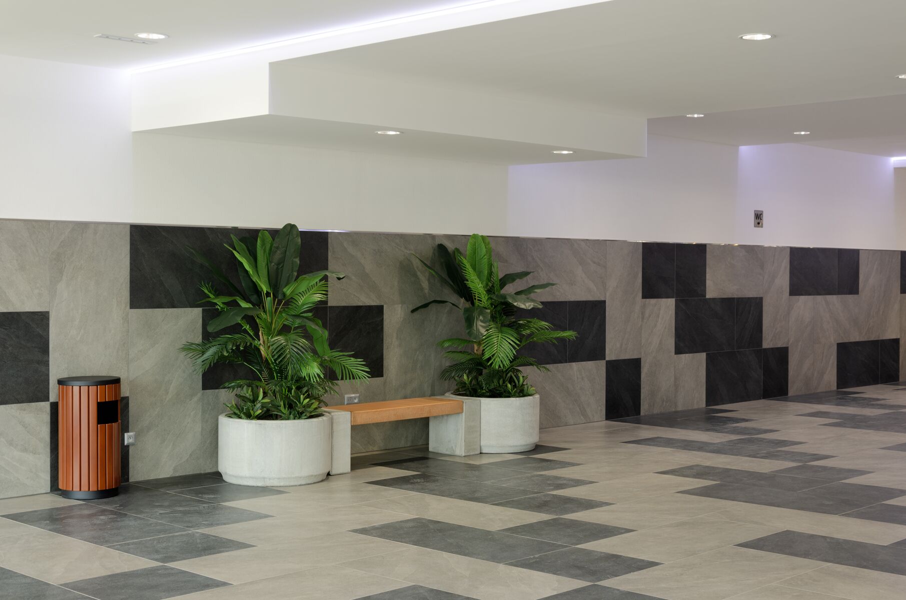 Sestavy MIAKI 03 s betonovým sedákem v barvě coffee si pro své prostory vybral MS-INVEST a.s., který realizoval výstavbu tohoto objektu na ulici Černohorské v Brně-Ivanovicích. Betonové květináče a lavičky jsou instalovány v interiéru centra, aby sloužili návštěvníkům k posezení a odpočinku.
