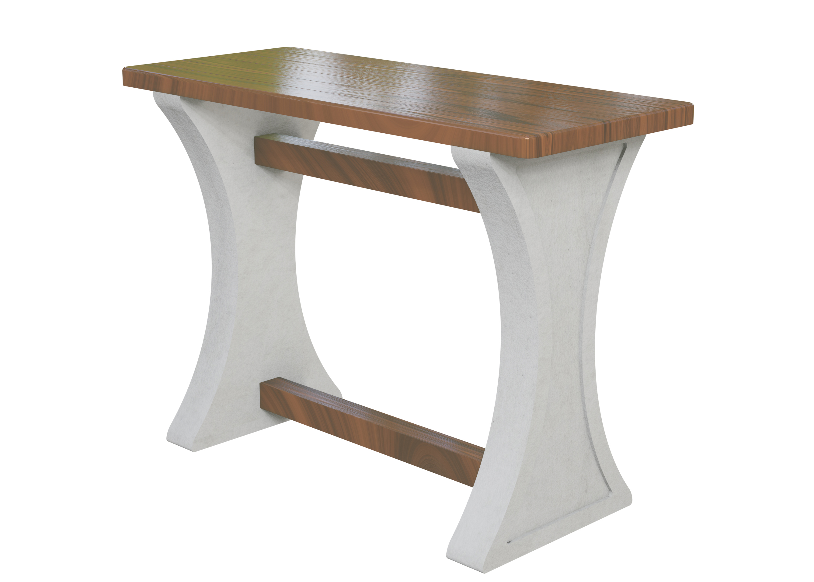 Betonový bar PREFAELEGANCE je typický svým obloukovitým tvarem nohy, který dodává tomuto prvku elegantní vzhled. Variantou desky je smrkové dřevo v odstínu teak, který nabízíme v délkách 150 a 200 cm. Nebo můžete zvolit bezúdržbový celek s betonovou deskou délky 150 cm s povrchovou imitací dřeva v barvě ebony či coffee. Bar je součástí městského mobiliáře PREFAELEGANCE, můžete jej tedy snadno kombinovat s lavičkou či stolem ve stejném designu.