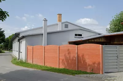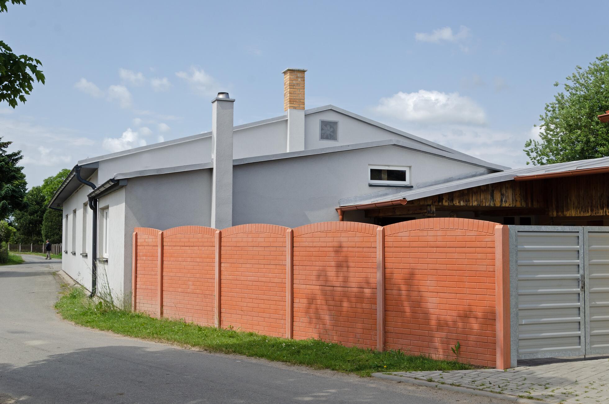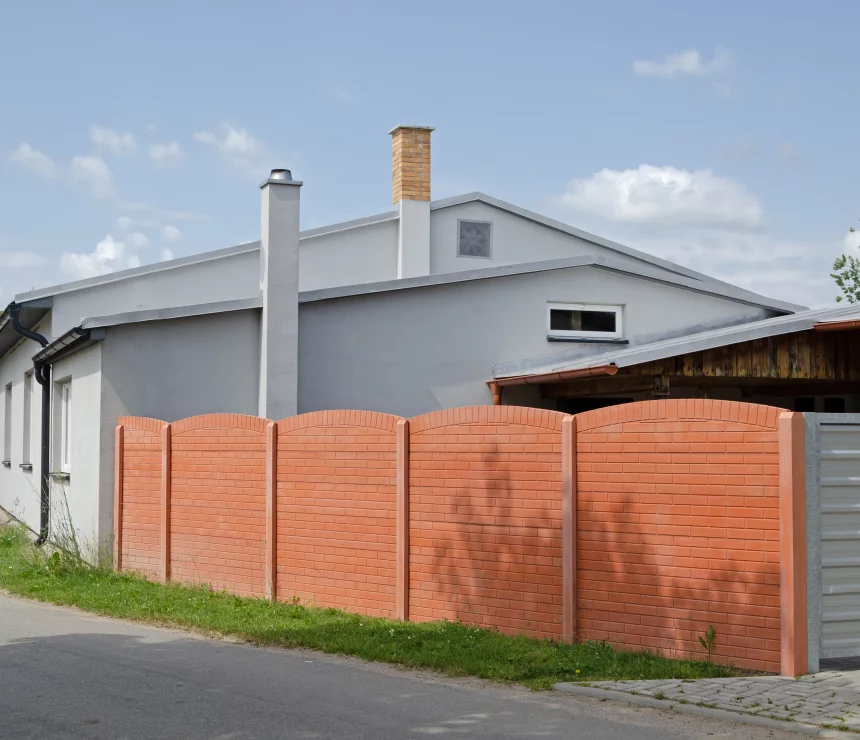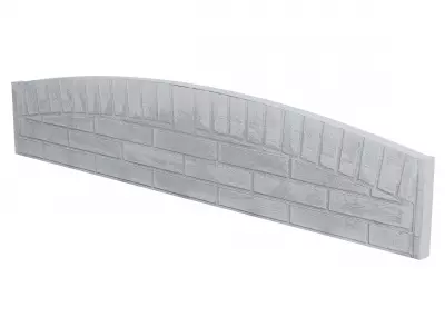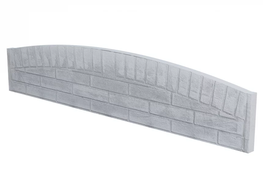 Ukončovací plotová deska pro betonový plot, reliéf LÍCOVKA je vhodná k vytvoření horního oblouku a je kompatibilní s jednostrannými plotovými deskami reliéf LÍCOVKA.