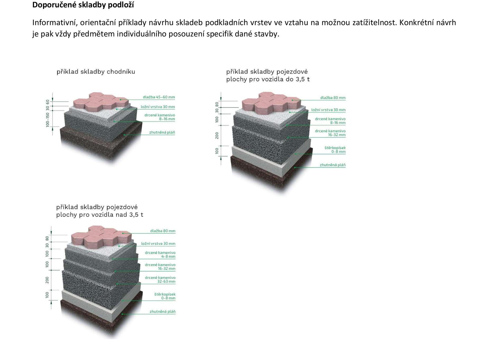 Dlažba je vyráběna z mezerovitého betonu se stupněm odolnosti vlivu prostředí XF4.
