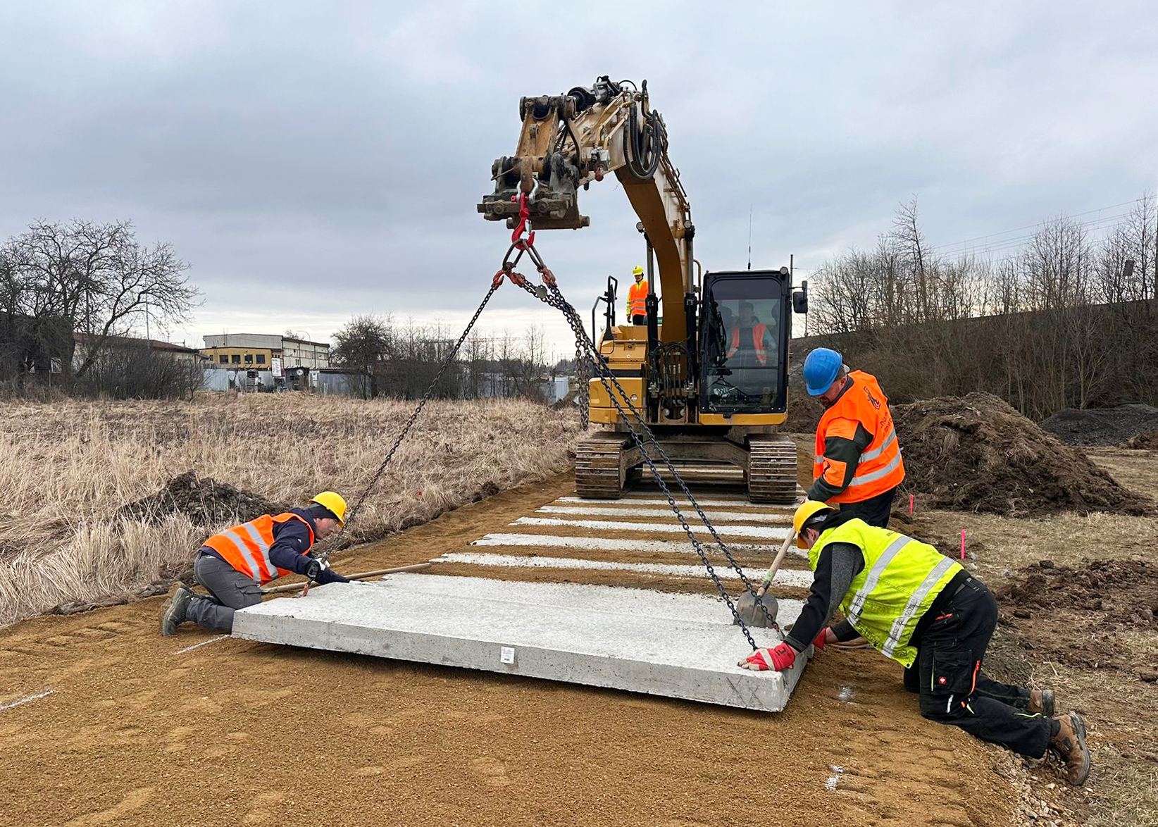 Silniční panely IZD jsou železobetonové prefabrikáty, které slouží k výstavbě dočasných účelových komunikací, příjezdových cest, parkovacích, skladových a ostatních zpevněných ploch.