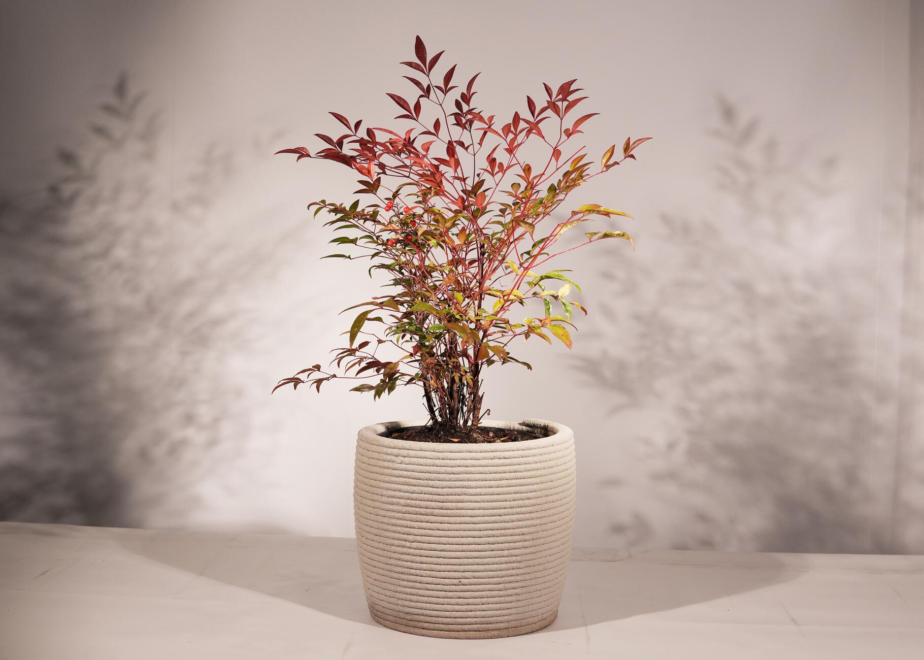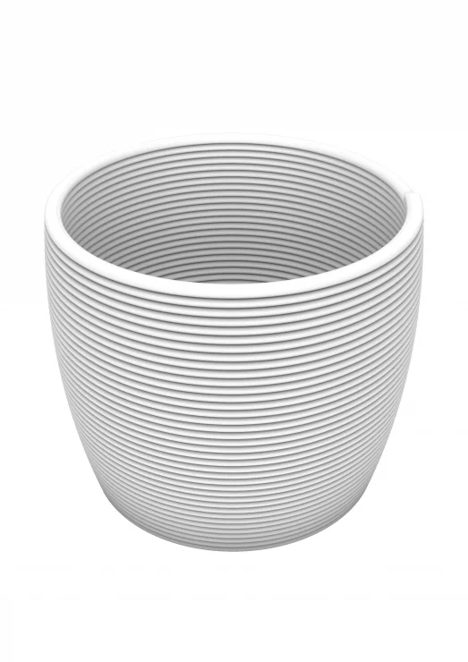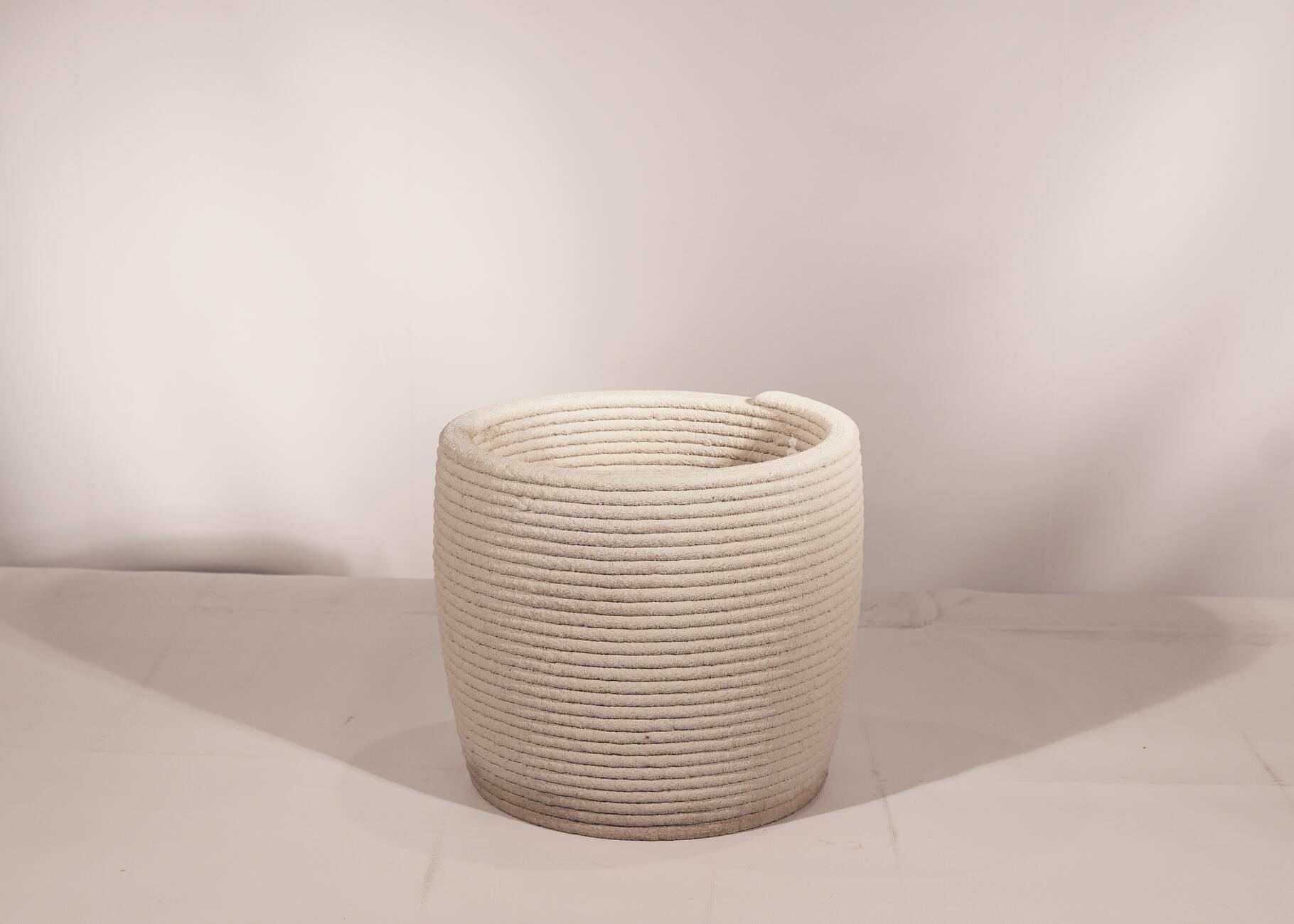 Velký organický květináč, uzavřené dno s dírou ve středu. Zhotoveno z 3D tištěného betonu. Květináč je určen do exteriéru nebo interiéru.