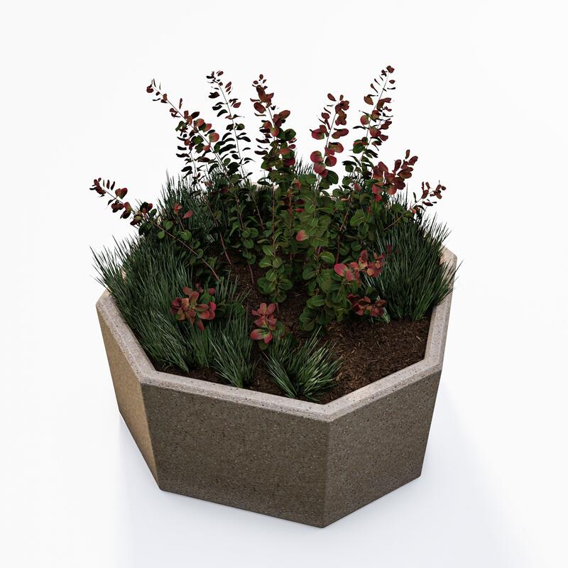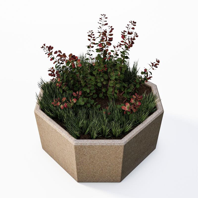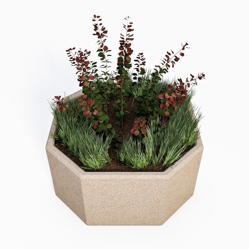 Betonový květináč Xena ve tvaru osmiúhelníku je s průměrem 800 mm jedním z největších z naší nabídky betonových květináčů. Hodí se na náměstí, do parků, obchodních center nebo může zpestřit atria bytových residencí. Svým neobvyklým tvarem dodá okolním prostorám originální vzhled. Se svojí váhou 150 kg je velmi stabilní a nemusíte mít obavy z jeho přemístění či odcizení.