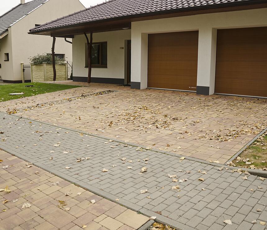 Nadčasová betonová skladebná dlažba VERDELIT® v melíru Elba oblíbená v okolí moderních rodinných domů