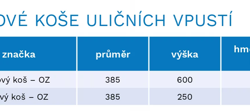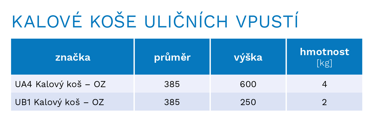 Kalový koš slouží k zachytávání kalů, nečistot a pevných částic, např. listí nebo drobného kameniva. Chrání tak před zanesením nebo poškozením kanalizaci či jiné technologie, na které je dešťová vpusť napojena. Je vyroben z pozinkovaného plechu a madlo z pozinkované oceli. Vhodný pro mříže 50x50 cm.