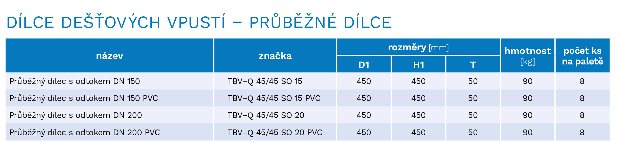 | Obrázek | Název | Průměr [mm] | Síla stěny [mm] | Výška [mm] | Hmotnost mj. [kg] | Na paletě | Cena s DPH | Dostupnost | Objednat |