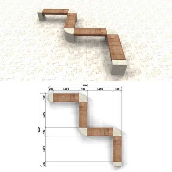 Sestava laviček MIAKI s pravoúhlým zalomením mezi jednotlivými kusy vytvoří zajímavý hadovitý efekt, který bude optickým kontrastem k rovným liniím.