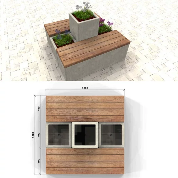 Sestava PREFACUBE je vyrobena z kvalitního litého betonu včetně sedáku lavičky, který dokonale imituje povrch dřeva. Jako alternativu nabízíme sedák k lavičce Sandra i v dřevěné variantě. Betonový městský mobiliář PREFACUBE klade minimální nároky na údržbu. Tyto sestavy jsou vhodné jak do exteriéru (parky, náměstí, městské promenády, hřiště, odpočinkové nebo sportovní zóny, cyklostezky), tak do velkých interiérových prostor (obchodní centra, nákupní zóny, átria, zimní zahrady, skleníky, atd.)