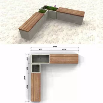 Dva květináče a dvě lavičky tvoří společně jednoduché pravoúhlé posezení vhodné do rohových prostor.