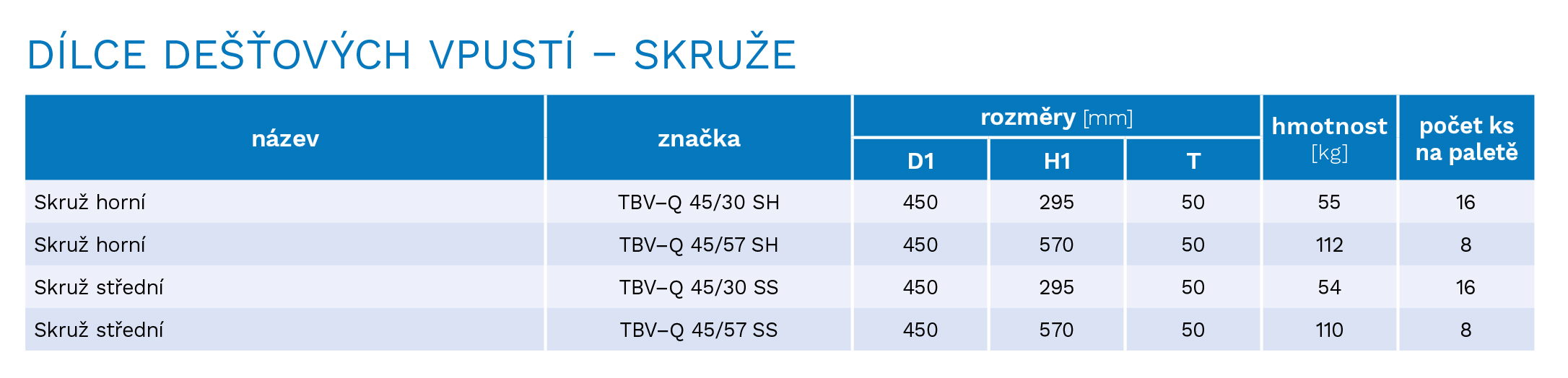 Obrázek: ![]() | Název: Skruž horní TBV-Q 45/57 SHKód: 1111 003/OP | Hmotnost mj. [kg]: 112 kg/ks | Cena s DPH: Na dotaz | Dostupnost: Skladem na 1 místě Brno - Dolní Heršpice: není skladem Hodonín: není skladem Kuřim: 17 ks Oslavany: není skladem Strážnice: není skladem | Objednat: -+ ks |