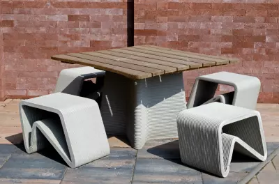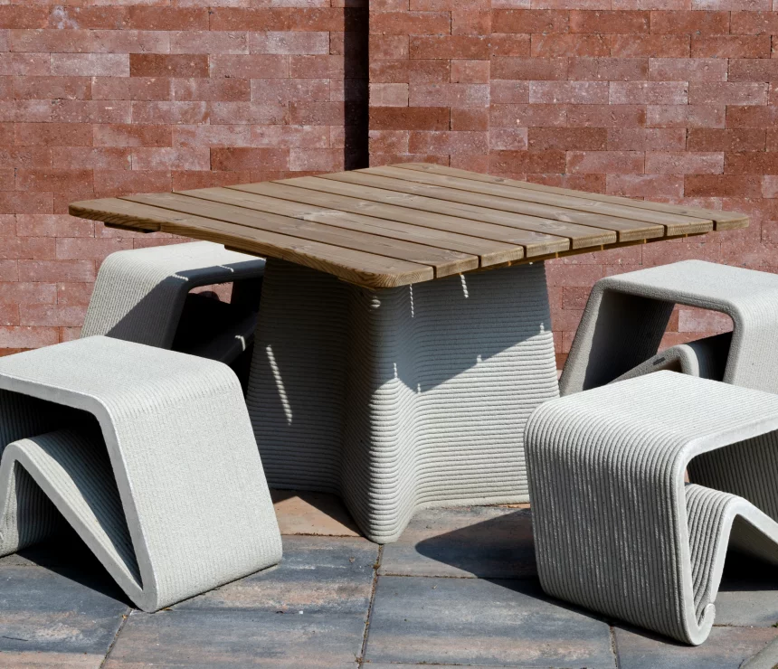 Zhotoveno z 3D tištěného betonu.