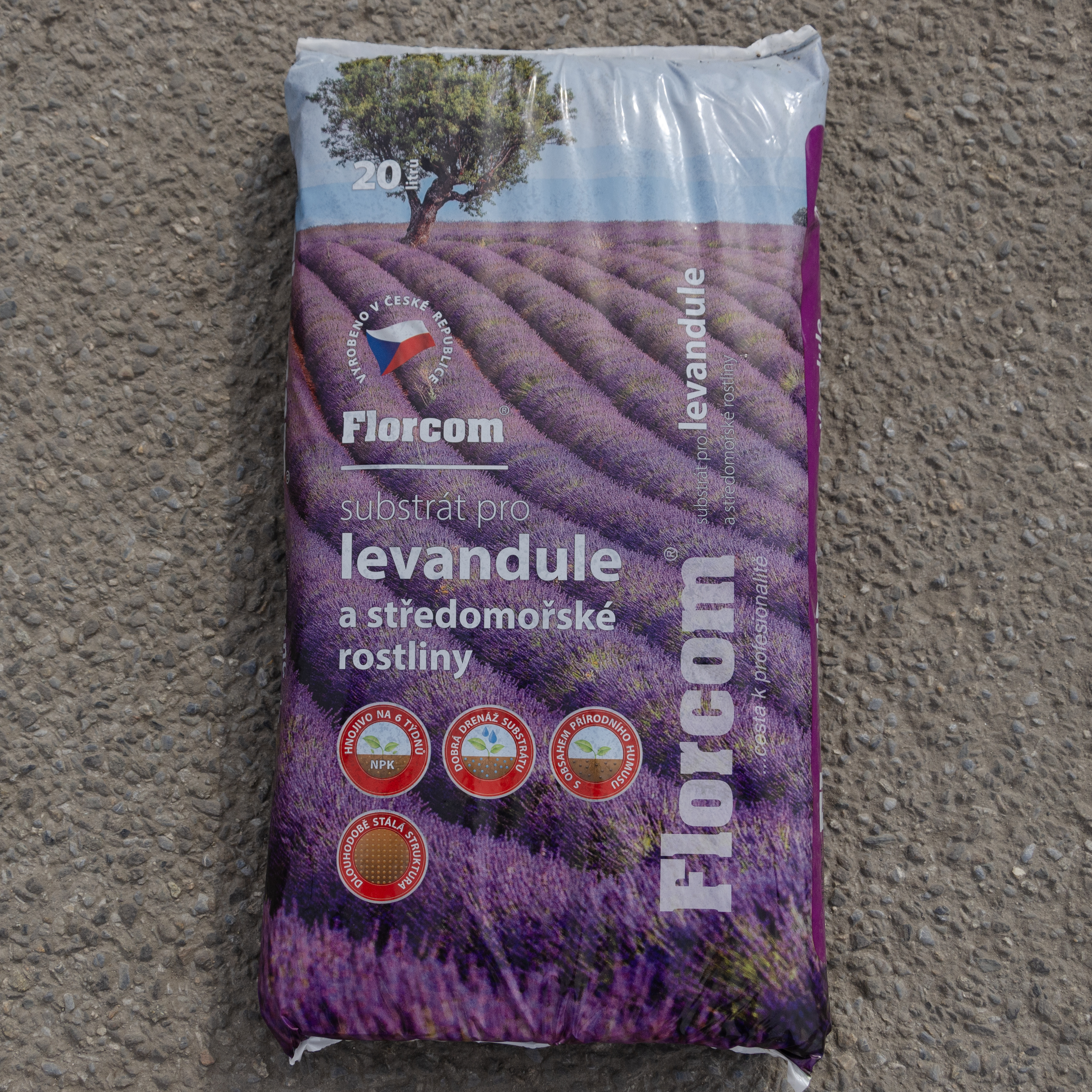Substrát pro levandule a středomořské rostliny je vyroben z nejkvalitnějších světlých a tmavých rašelin s vhodnou kyselostí obohacený vyzrálým kompostem. Rašelina je vytříděná a svojí strukturou zajišťuje optimální vododržnost a dostatek vzduchu pro zdravý vývoj kořenového systému. Substrát je obohacen hnojivem o živiny a stopové prvky a pH je upraveno vápencem.