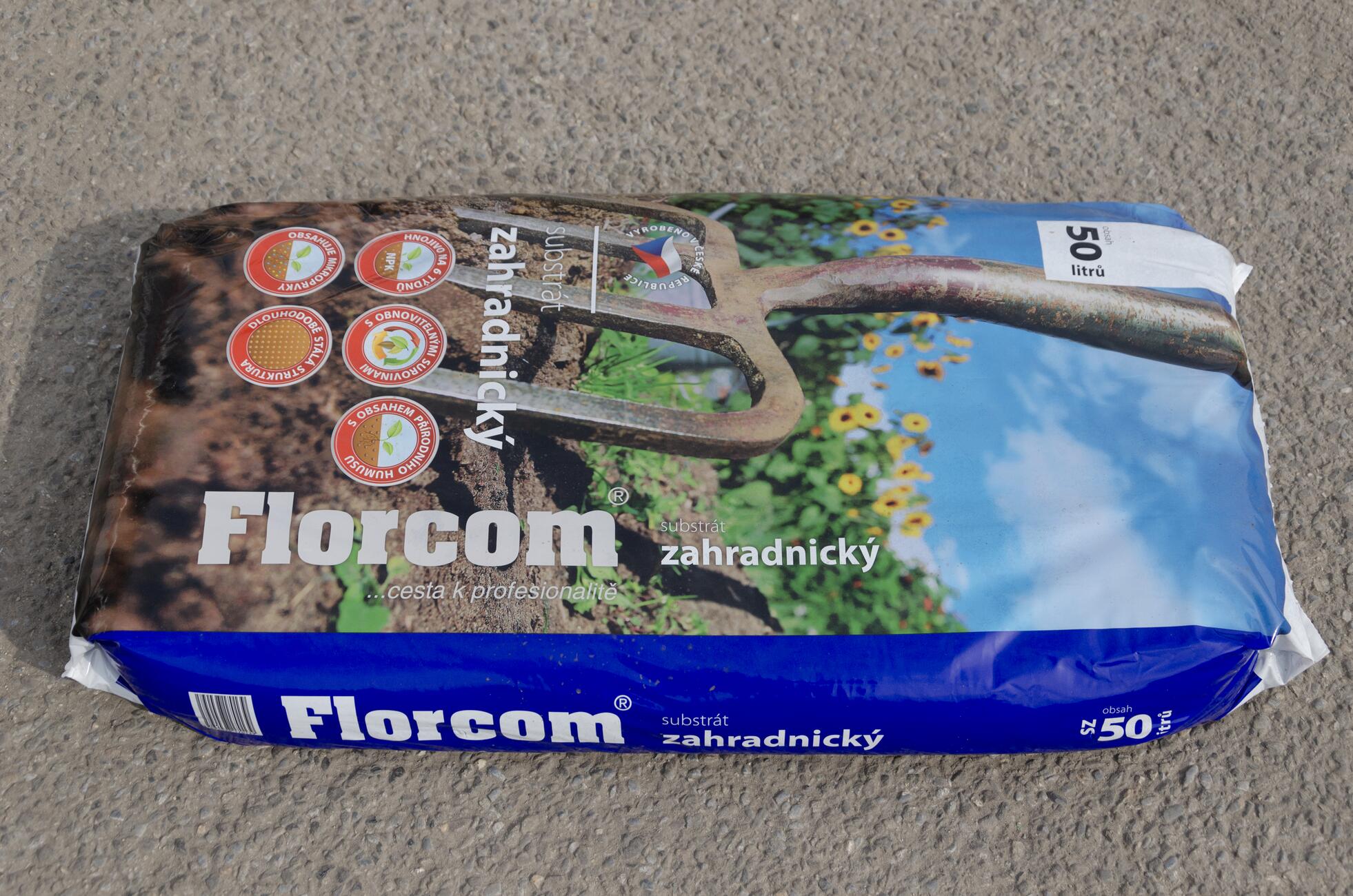 Florcom zahradnický substrát je vyroben na bázi světlé a tmavé rašeliny s upravenou reakcí a je obohacený základními živinami a stopovými prvky na dobu 4 - 6 týdnů. Vyznačuje se vysokou nasáklivostí pro vodu a dobrou vzdušnou kapacitou. Je optimální pro zdravý vývoj rostlin a jejich kořenů.